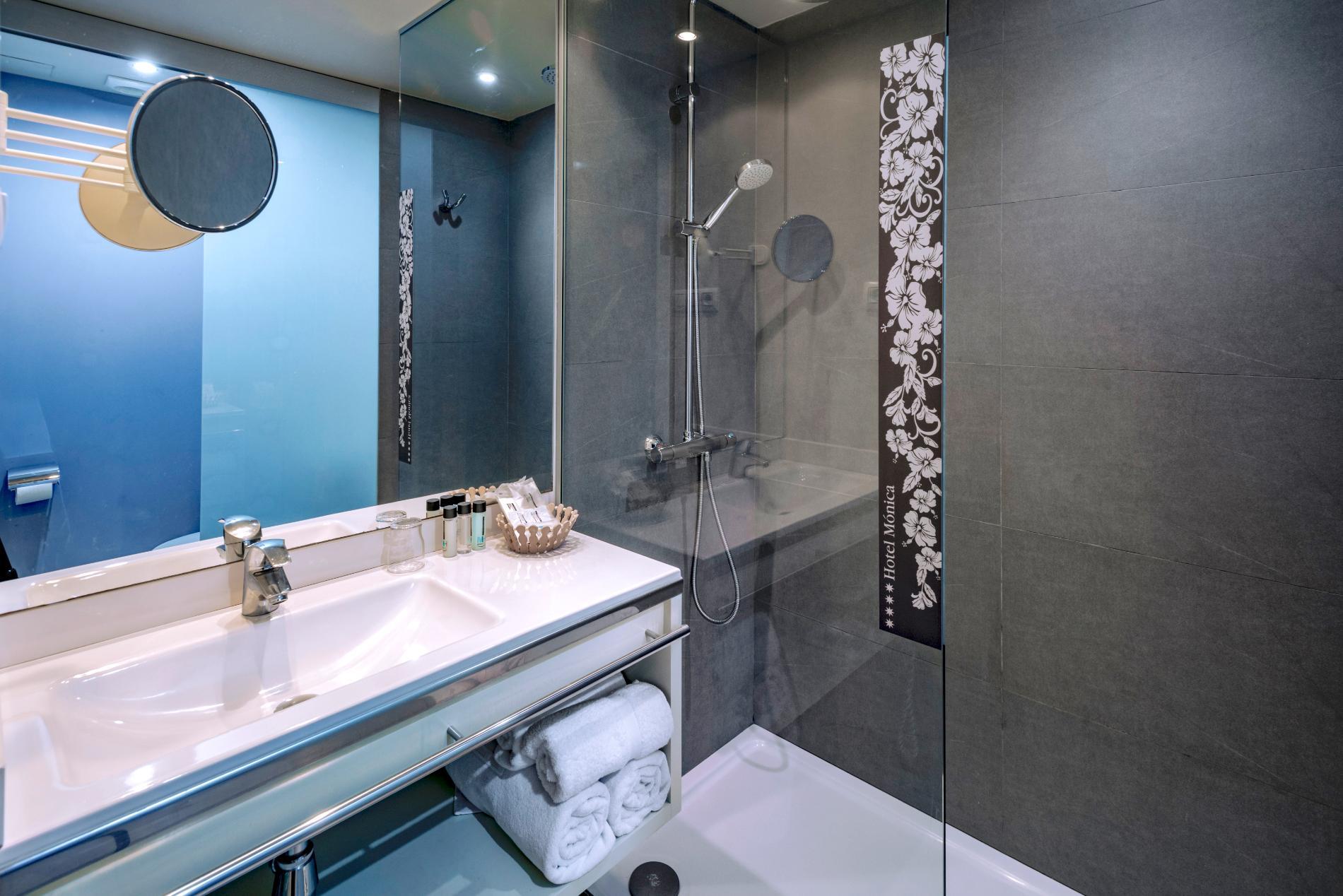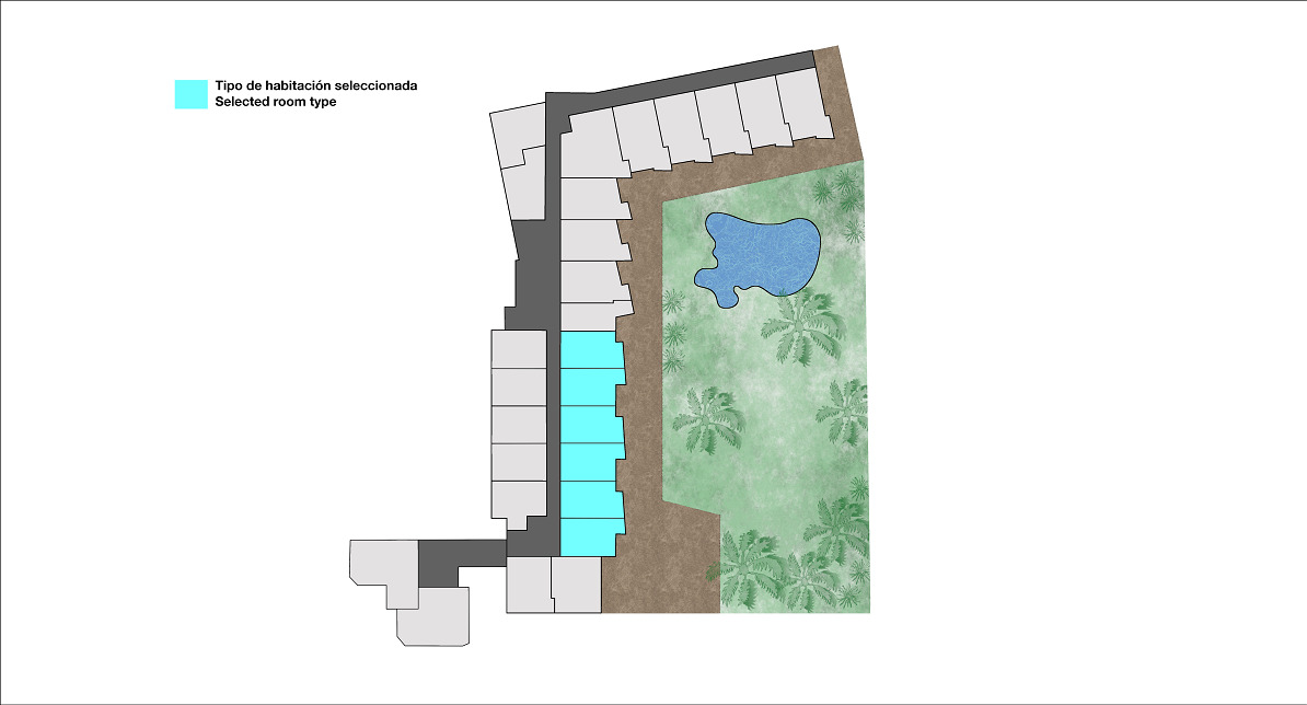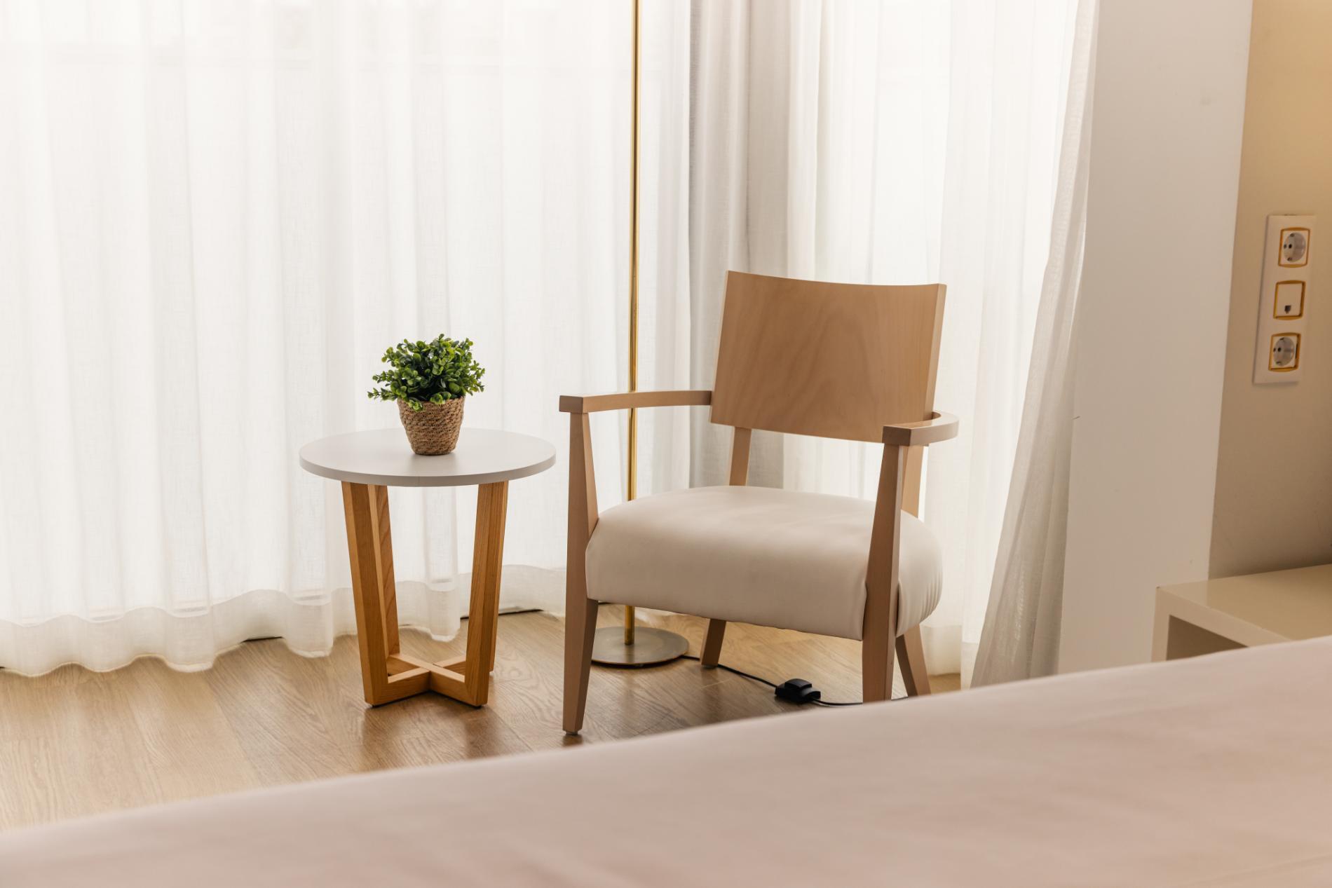 Diaphanous atmospheres with views of the green of the hotel garden from the comfort of your room. Exterior room with soft tones and equipped with all comforts.